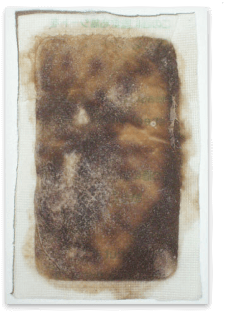 The following morning, as Dennis woke and took the patches off, they were dyed in black. Rich, full black. It seemed strange because Dennis had washed his feet the previous night so there was no way for them to be dirty. Dennis went back to the practitioner and asked what the reason may be.